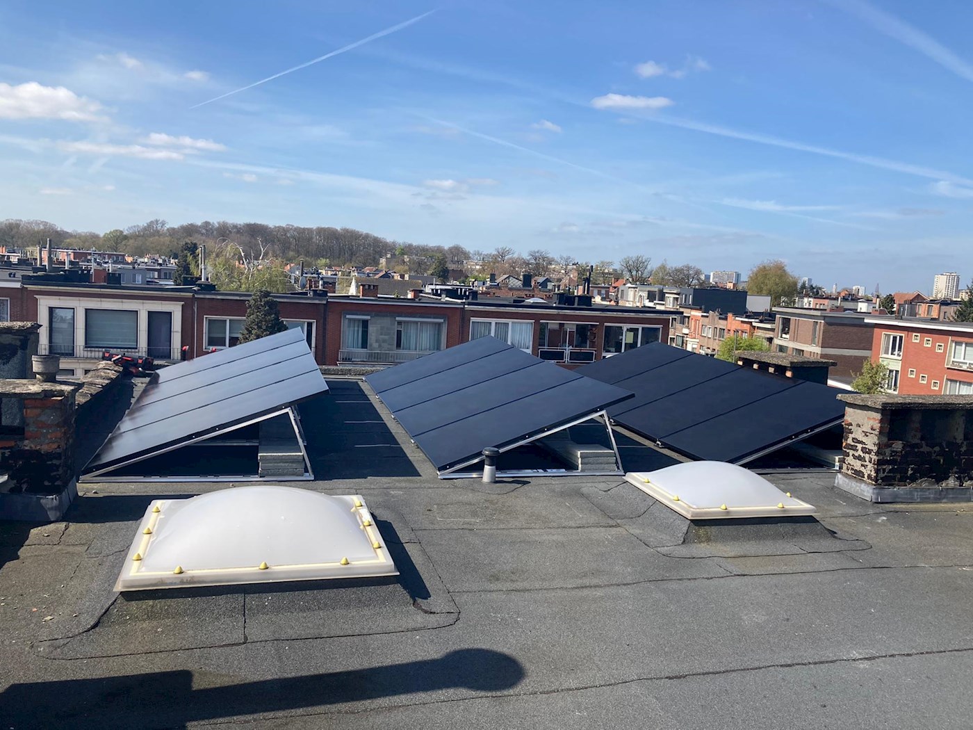 Plaatsing zonnepanelen op plat dak te Antwerpen