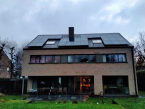 Wij mochten dit mooie huis in Marke (Kortrijk) voorzien van zonnepanelen op het pannendak. We kozen voor 28 Sunpower Max3-375 Full Black zonnepanelen en een SMA-omvormer SB 5.0.